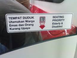 Ada masanya bukan hanya untuk wanita mengandung tetapi untuk OKU, warga emas dan lelaki mendukung baby pun apa salahnya diberikan seat. Buatnya terlucut anak di tangan kesian baby diakan? Walaupun lelaki kuat, tidak salahnya kita saling berbudi bahasa sesama kita walaupun berlainan bangsa dan agama. Kata 1 Malaysia?